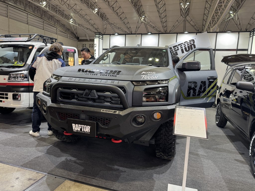 なんと!三菱自動車様にて展示されていたデリカD:5とデリカミニもラプターライナー塗装が採用されております。
