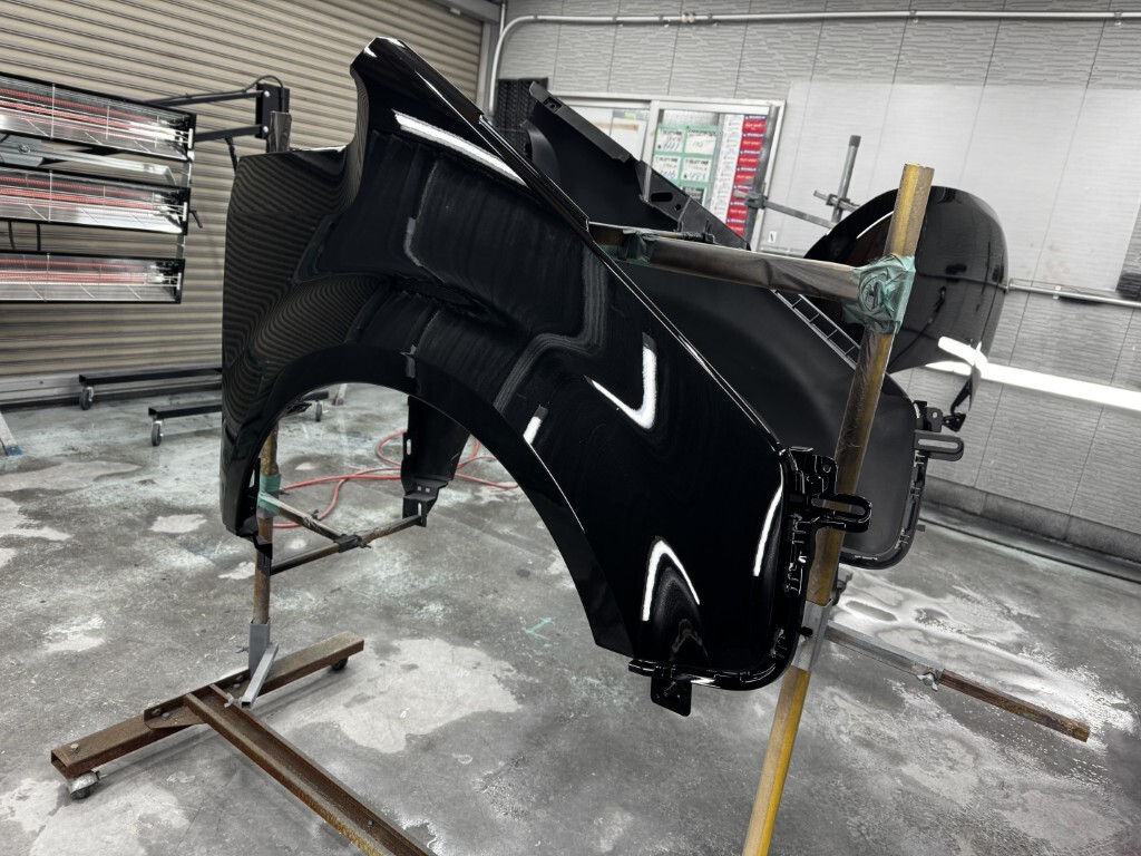 また、経年劣化で左右に色差が出ているので右フェンダー用・左フェンダー用となるべく色ブレが出ないように2色作って塗装致しました。